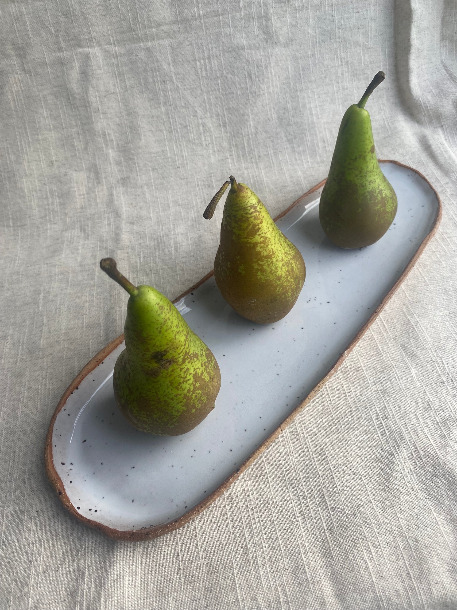 Handmade 35 cm Oval Ceramic Plate – Speckled White Glaze-